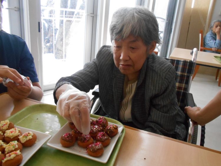 ドーナツにチョコをトッピング。