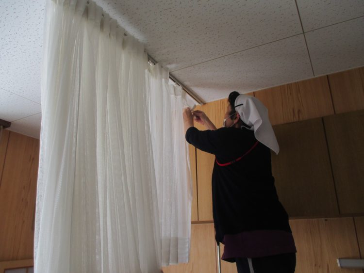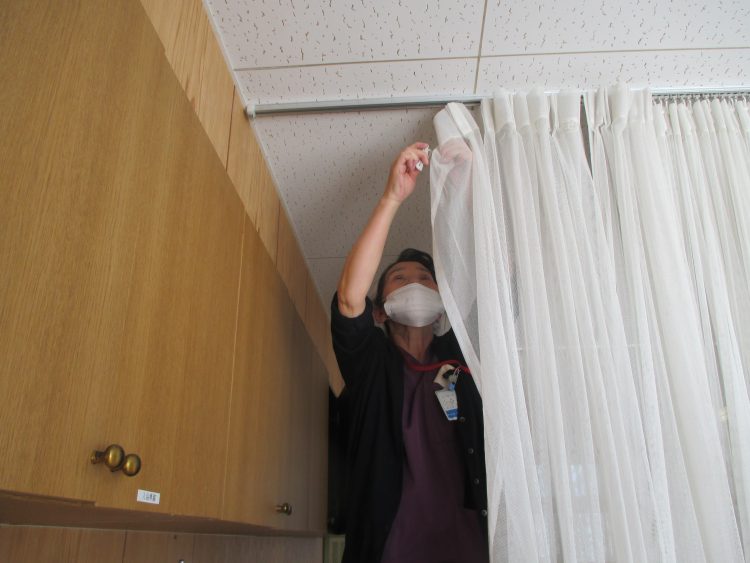 今日は清掃員さんが各居室のカーテンの部品交換をしてくれました。