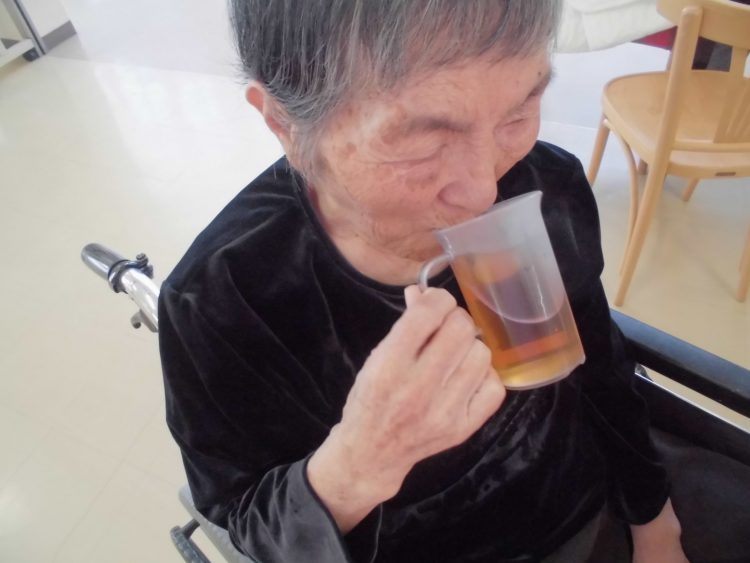 お茶を提供すると、笑顔で「おいしい、ありがとう」と言ってくれました。やっぱりお風呂上りの一杯は最高みたいです。