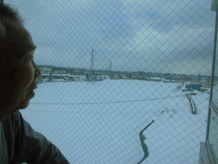 H様は曇った景色を見て、「また雪が積もってる、はやく春になって欲しい。春になったら花見に行きたい。」