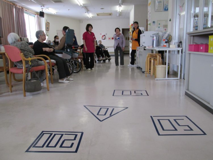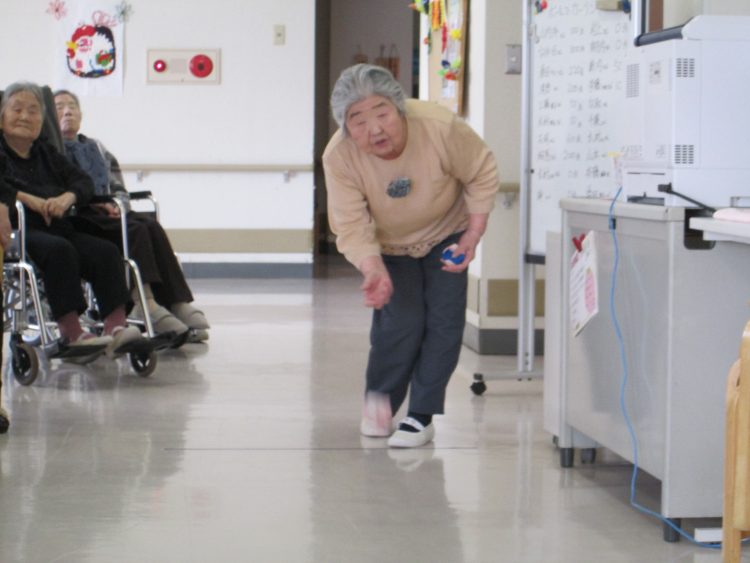 午後からは、皆さん楽しみにしている、お手玉でカーリングの時間です。」