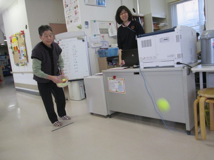 バウンドボールのコツは、『的を狙わず、何も考えないで投げること!』とスタッフからのアドバイスがありました。