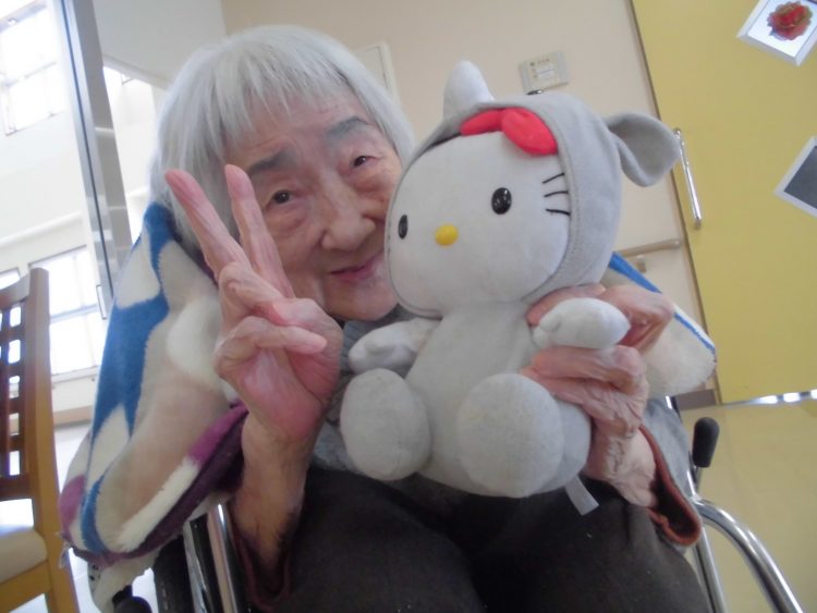 大好きなぬいぐるみと一緒にピースまでしていただきました。いい笑顔ですね。