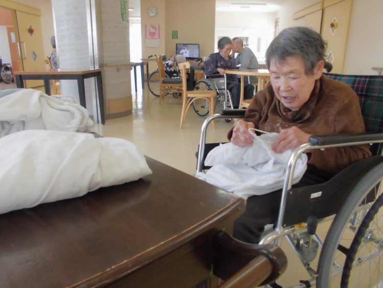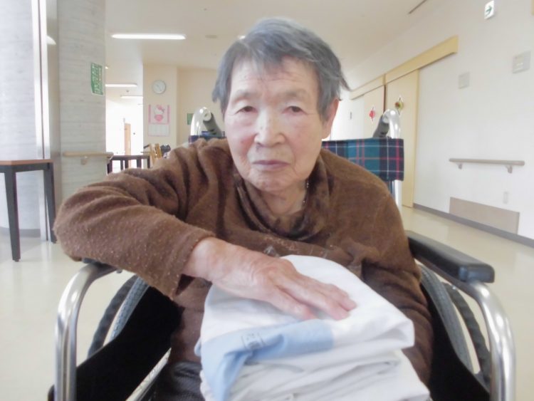 職員が洗濯物などを畳んでいるといつも「私も手伝う。」と言って手伝ってくださるK様。