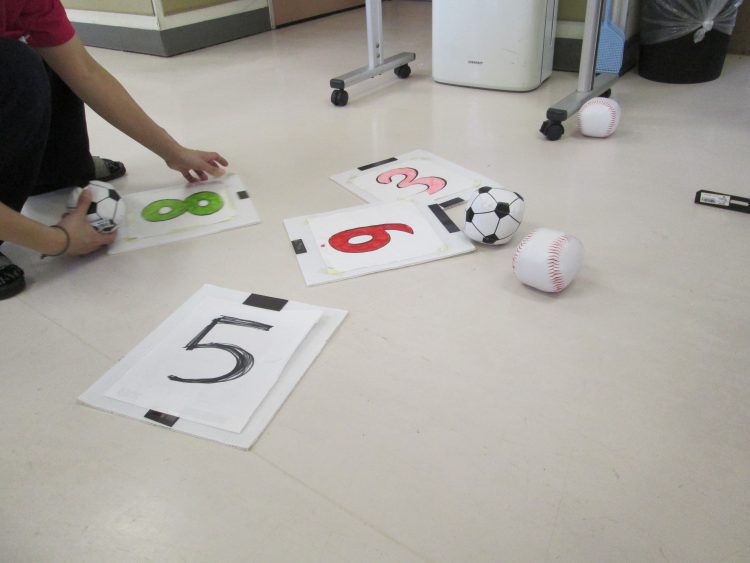 今日は一人5球を2回投げてもらい、合計点数で競いました。