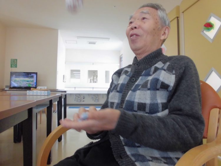 す。F様はお手玉を職員に披露して下さいました。