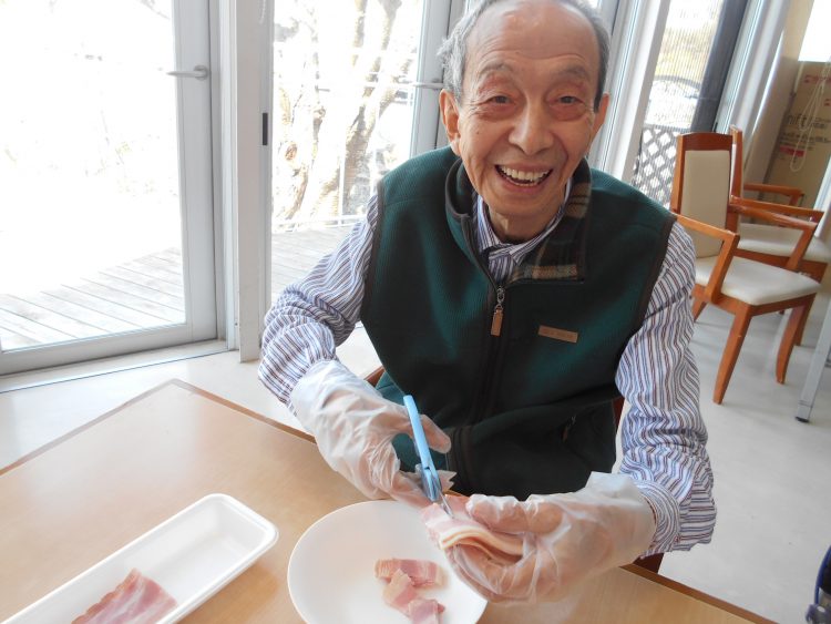 I様はベーコンを切っていただきました。