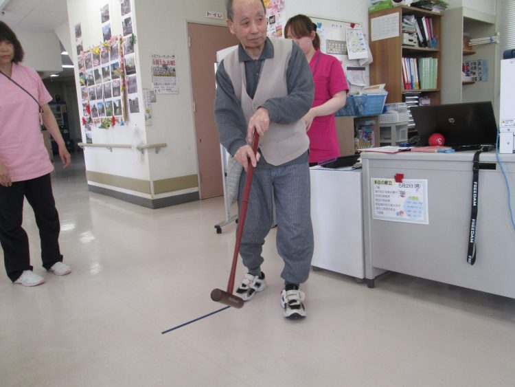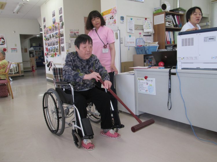 車椅子のお客様も座りながら頑張っています。座ったままの方がまっすぐ打つのがむずかしいのでは?