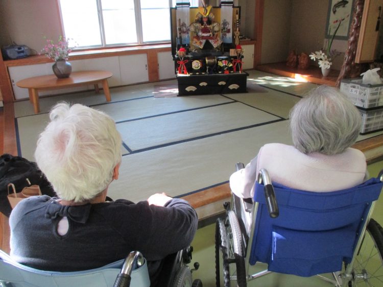 もう少しで5月5日、こどもの日がやってきますね。特養ホールには立派な人形が飾られております。