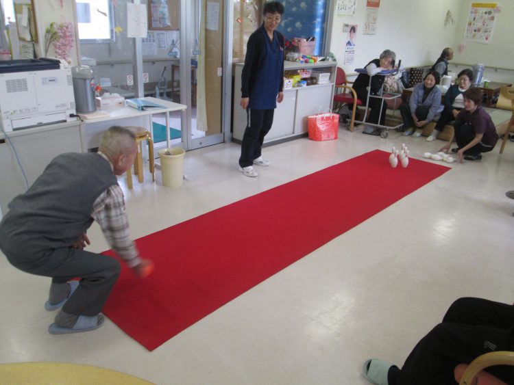 2投目、とっても低い姿勢みんなの期待を背負って・・・全部倒せるかな?