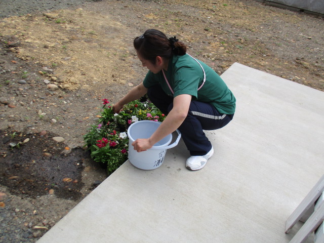 今日の天気は、鈍よりとした天気でしたが、お花が仲間入りし、気分が少し明るくなりました。これから、沢山のお花や野菜を植えていきましょうね。水やりを、毎日みんなで行い、綺麗なお花を咲かせましょうね♪