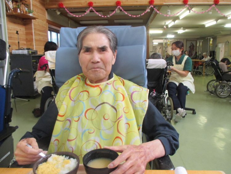 お客様に安全に食事を楽しんで頂く為に、しっかり声掛けを行い、介助を行っております。