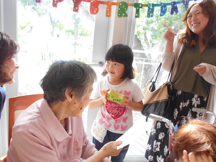 ハッピーバースデイの歌のあと、ケーキとジュースで乾杯し、娘さんからのプレゼントやひ孫さんからのお手紙披露、またK様にまつわる思い出話など、大いに盛り上がりました!