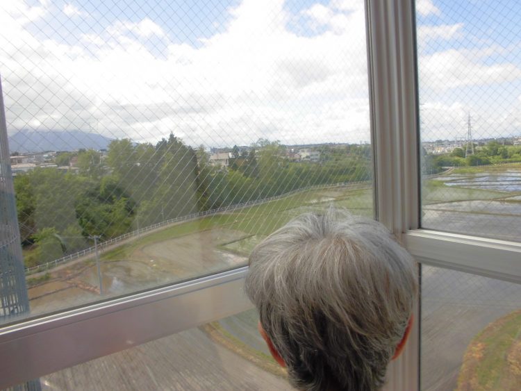 こちらでは、眺めの良い4階から周りの風景を楽しんでおられました。本日は、岩木山に雲がかかっており、残念ながら綺麗な姿は見らませんでした。