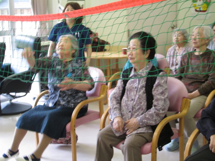 風船バレーが得意なKさん。「それ、それ」気合が入ってます。
