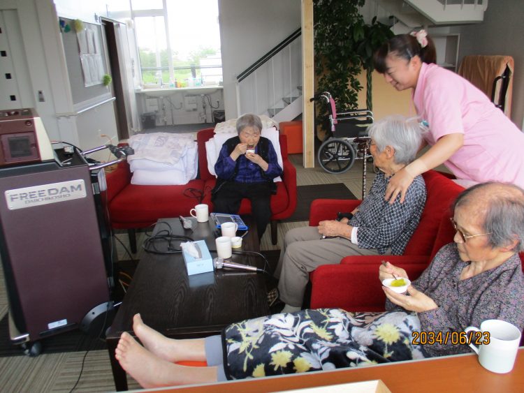 熱唱した後は、お茶とゼリーでひと休み。