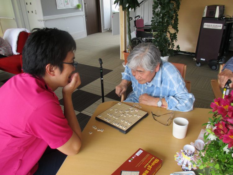 またS様は、職員と今大流行の、将棋をし過ごされています。小規模の職員も藤井四段とまではいいませんが、中々の腕を持っているようで、S様と互角に渡り合っていました!