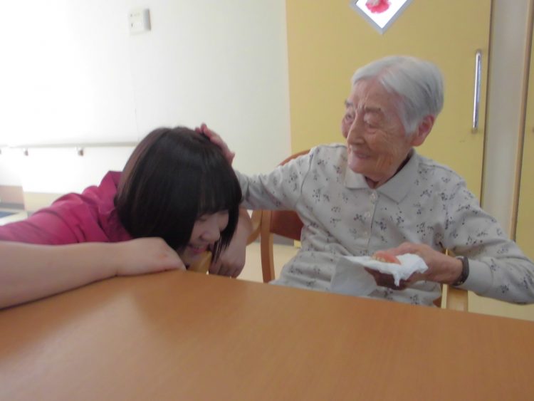 こんにちは。今日も暑い日ですね。皆さん、熱中症のほうは大丈夫ですか。しっかりと水分補給を忘れずにまだまだこれからの暑さに負けないように頑張りましょう。M氏も「暑くても頑張る」と話し水分補給をし熱中症にならないように頑張っています。それを見ていたK介護員も「私も頑張る」と言うとM氏は、K介護員の頭をなでなでし嬉しそうに笑っていました。皆さんもこまめに水分補給しこれからの暑い日を乗り越え熱中症にならないように頑張りましょう。 <ショート M・Y>