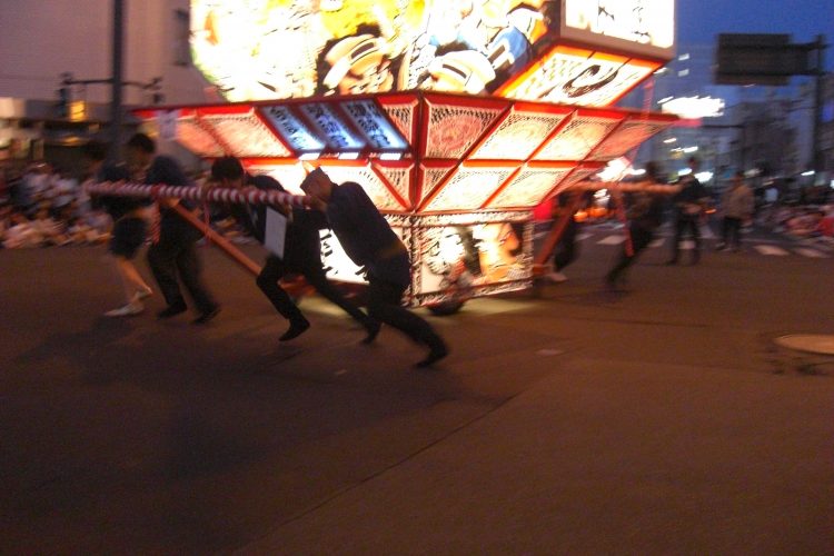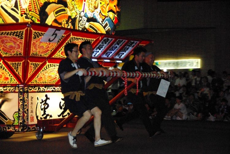 千秋楽という事もあり、職員も気合が入っており、ねぷた囃子にも、山車を引く手にも力が入ります。