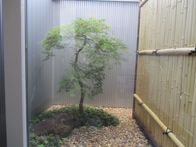こちらは、お風呂の外の景色です。中で湯船に浸かりながら、外を見るとまるで露天風呂のような景色です。