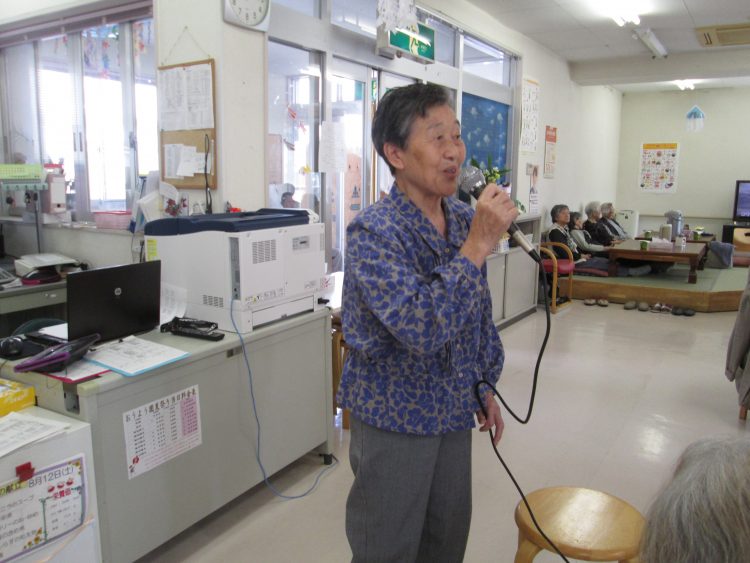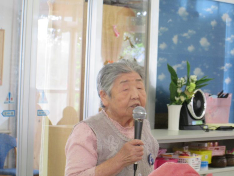 歌われた方も、聴いていらっしゃる方もとても楽しい時間を過ごすことができました。「夏祭り、楽しみだね。八郎さん(黒石八郎さん)の話どんな感じなのかなぁ?早く見たいな」とワクワクしておりました。
