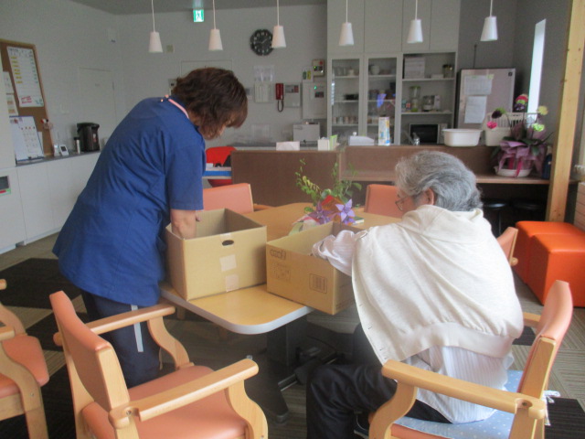 S様もダンボールの隅まで色紙を貼り・・・