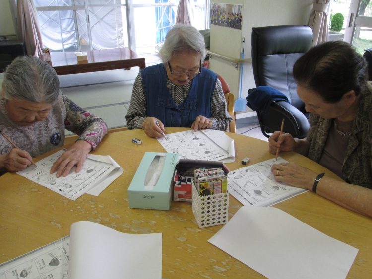 今日の午後は脳トレを行いました。甲子園が気になるお客様もいる中、野球を見ながら脳トレを行いました。