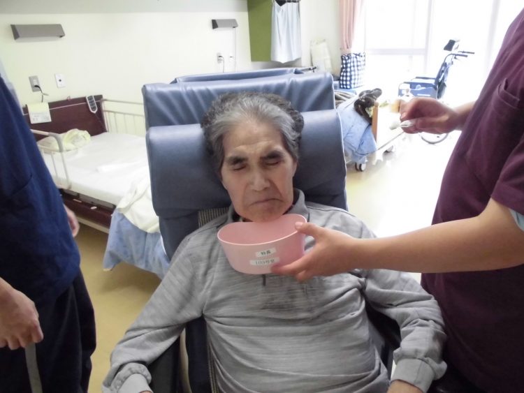 今日は毎食後に行っている口腔ケアについてご紹介します。お客様は毎食後、各々歯磨きをしたり、うがいをしたり、職員に歯磨きティシュで口腔内を拭いてもらったり、各お客様の状態に合わせてケアします。