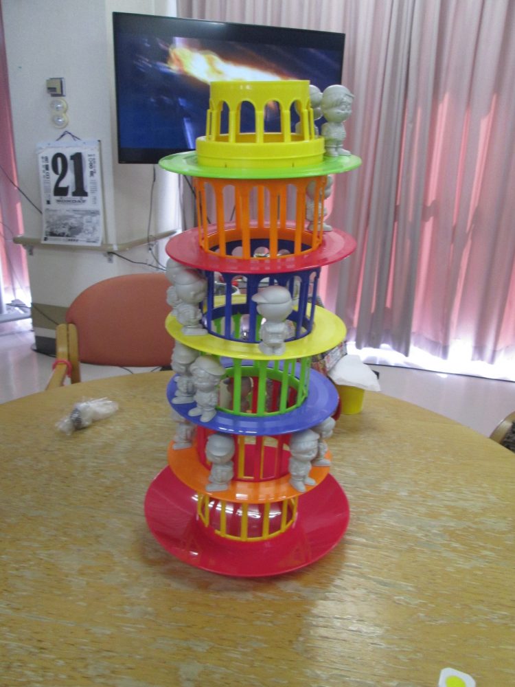 バランスゲーム♪ですが、なかなか皆様お上手ですね~♪こんなに綺麗に立ってます!どこでバランスを取ったら倒れないか?なかなか頭を使います。パッ!と判断する事が難しいですが、上手く出来るとホラ!とっても嬉しい♪その他、“絵合わせ”ゲームをして盛り上がりました。