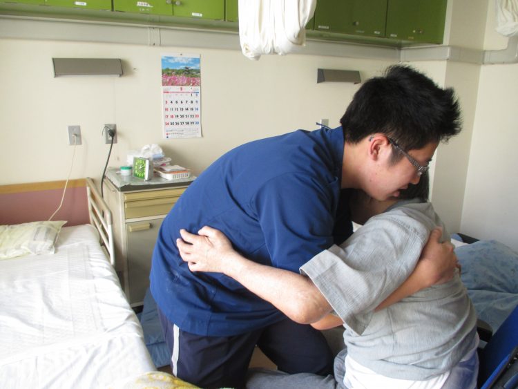 お客様を優しくベッドまで移乗し、お客様の好みや天気に応じてリネン調整をしながら行っております。