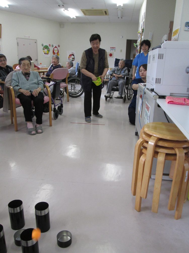 2回目は、茶筒の配置をかえてやってみました。2回目の最高得点は200点でした。結果、1回目で最高得点を出したH様が合計900点で優勝しました。