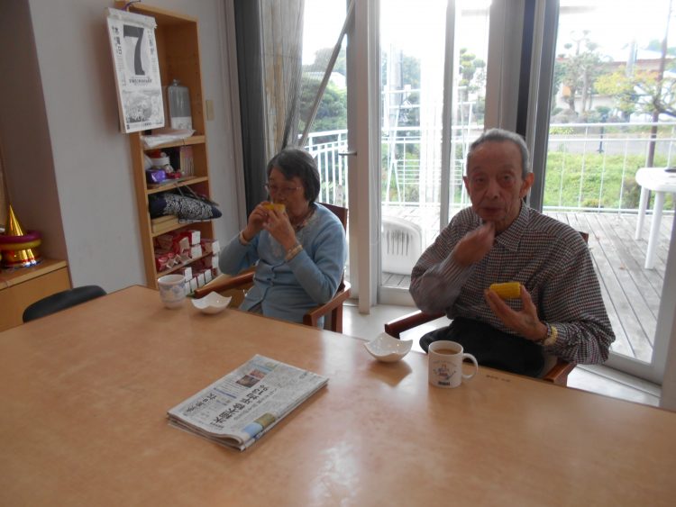今日のおやつはきみです。I様、食べるに一生懸命ですね~ ふいうちでパチリ 美味しかったそうです~ 良かったですね (s.s)