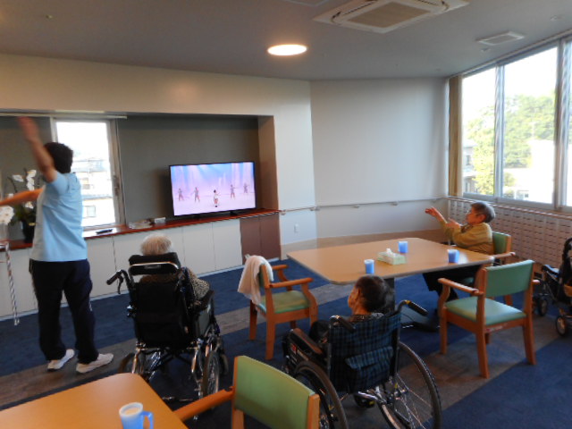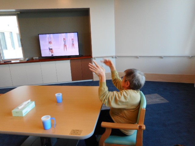 そしてそれに合わせて皆さんが手を動かします。動かす範囲は限られますが皆さん楽しそうに体を動かしております。