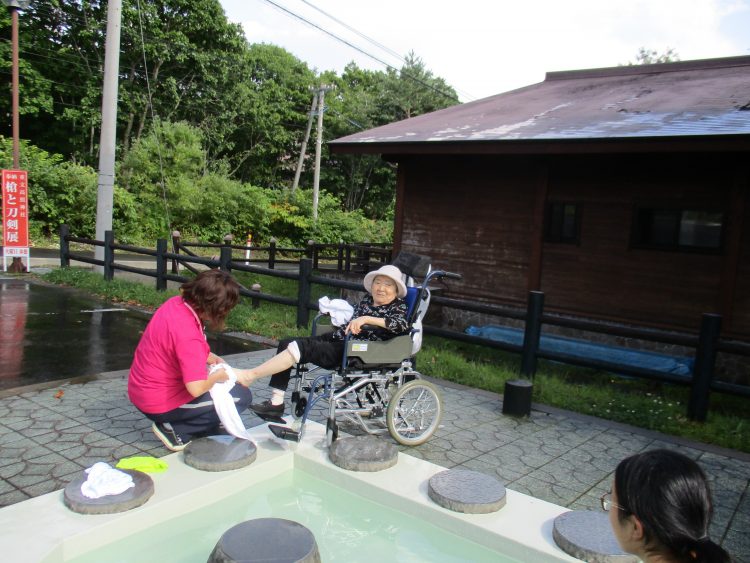 足湯の帰りに嶽キミを試食^-^「甘くて美味しいね」と話されていました。また、季節を感じ・味わいに出かけましょうね!