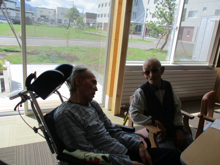 S様とN様が談笑している様子です。職員も加わり、昔話しにはながさきました♪