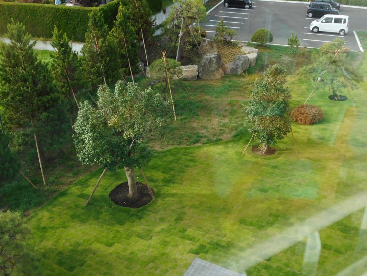そして正面玄関からは、中庭の松ノ木が、心を癒してくれます。