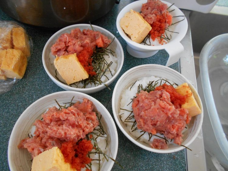 本日は、ベルフラワーのお客様と一緒に、「海鮮丼」を作りました。