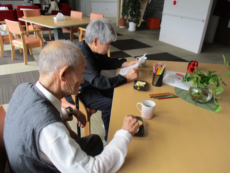 体操の後は、みんなでおやつを食べながら、喉を潤しております。