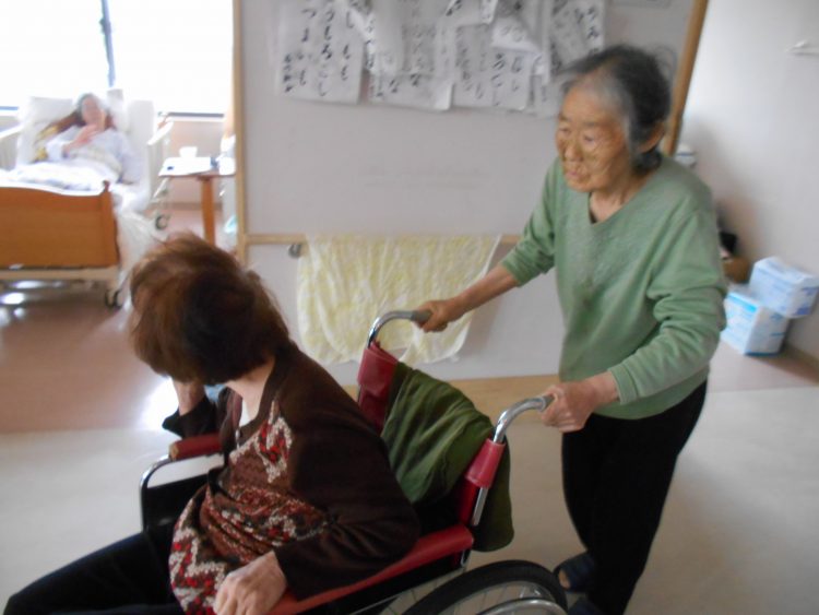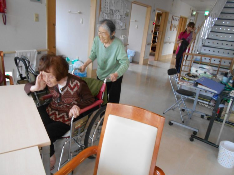 K様がH様の車椅子を押し、ホールまで誘導して下さいました。