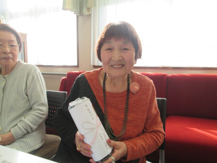 記念品贈呈では白寿・卒寿のお客様へプレゼント☆彡その他のお客様にも全員へブランケットのプレゼント。