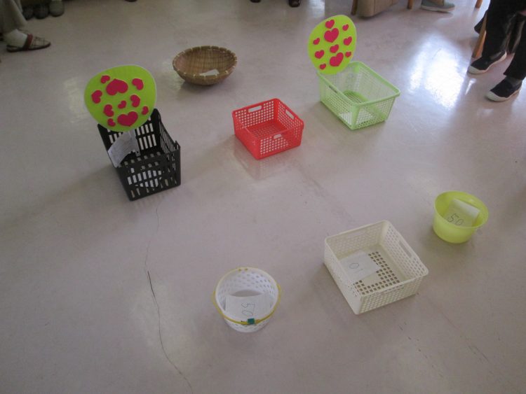 お客様の狙いは的確!!一番遠いカゴにどんどん、お手玉が入る入る!!