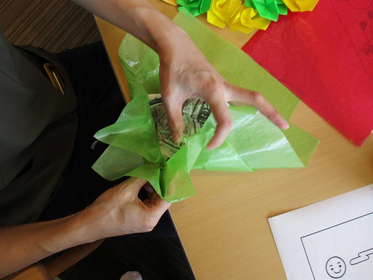 器用に綺麗な紙で包み、バランス・色の具合いを見ながら・・・