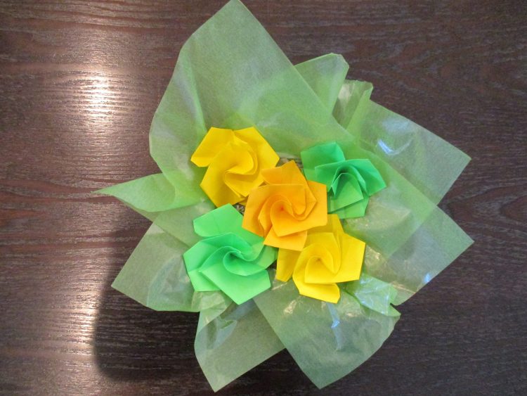何とか完成!!折り紙でバラのブーケ?!綺麗ですか?どうでしょう^-^