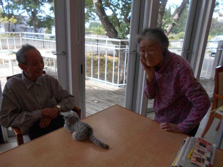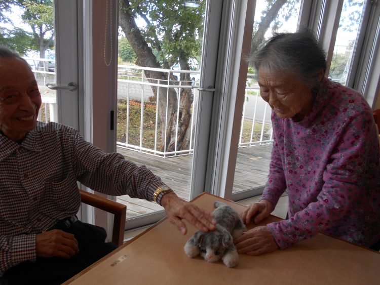 I様とK様は、子猫のぬいぐるみがお気に入りです。「めごい、めごい」と可愛がっています。