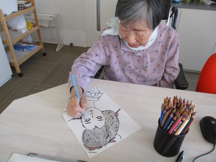 その後、塗り絵を行いました♪赤や黒、色々な色を組み合わせて、完成されました。