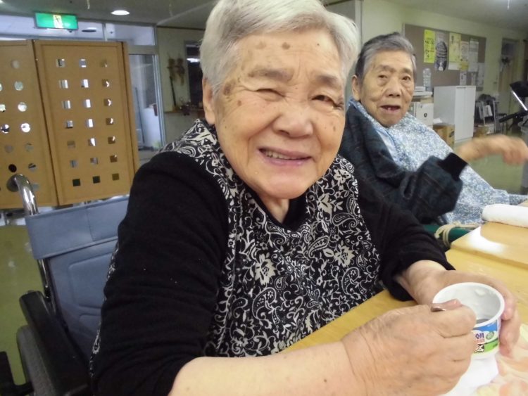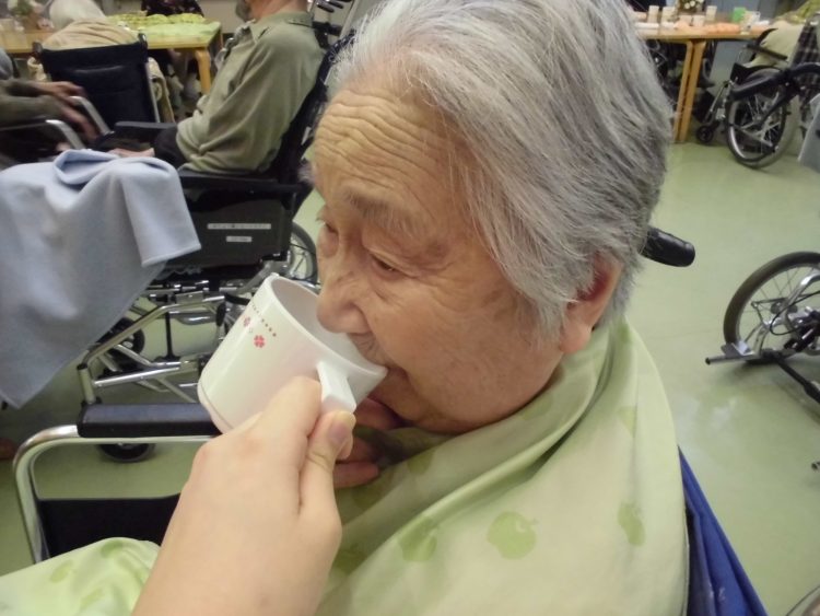 自分の席まで車椅子を自操した後は、C様に用意してあるお茶とヨーグルトを召し上がっておりました。