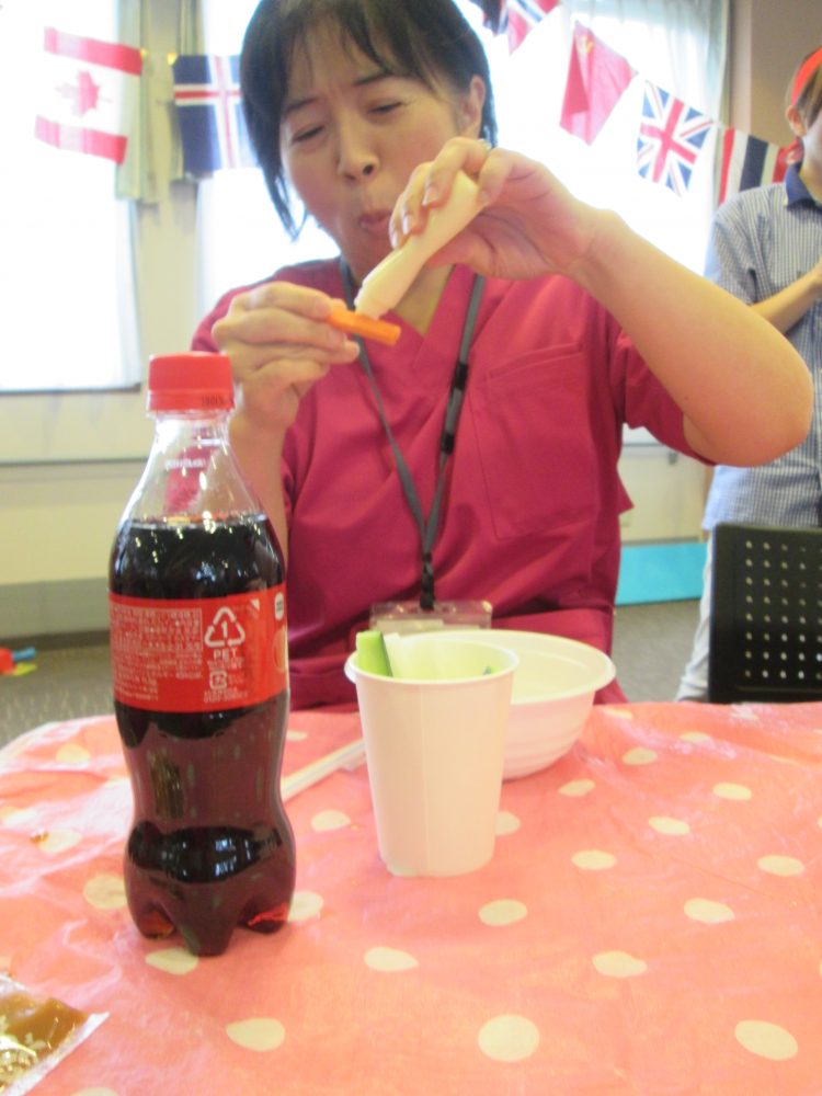 次は野菜ステック 実は、食べている職員は、虫歯があり、野菜をかじって歯が痛いのを我慢していたそうです。