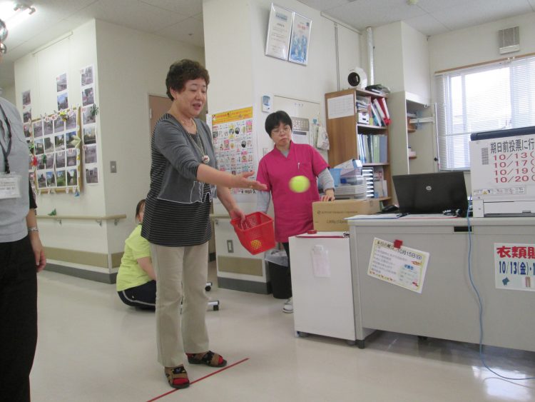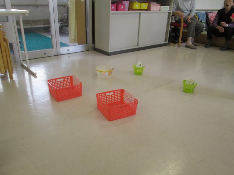 5個投げて何個入るかな?カゴに入れるより難しいようです。