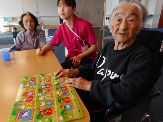 今日の余暇活動はパズルです。組み立てに挑戦するのはこちらo様です。職員と楽しく組み立てていきます。