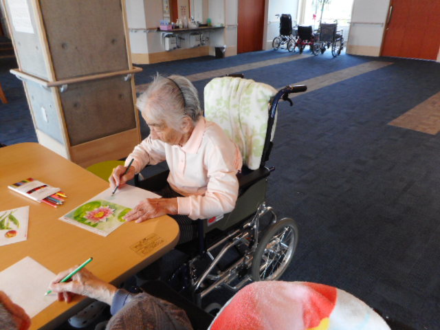 今日は、塗り絵を余暇活動で行いました。